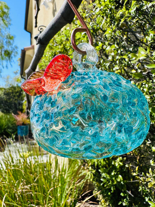 Handblown Art Glass Humming Bird Feeder Small