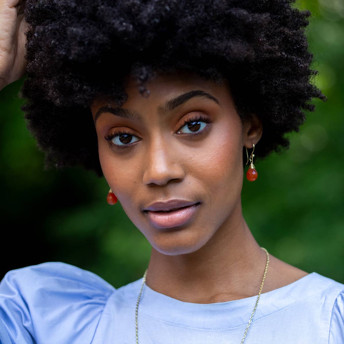 Anju Jewelry’s handcrafted Gold-Plated Teardrop Earrings, featuring beautiful natural gemstones. Each pair is thoughtfully made by skilled artisans, ensuring you receive a unique and high-quality accessory.