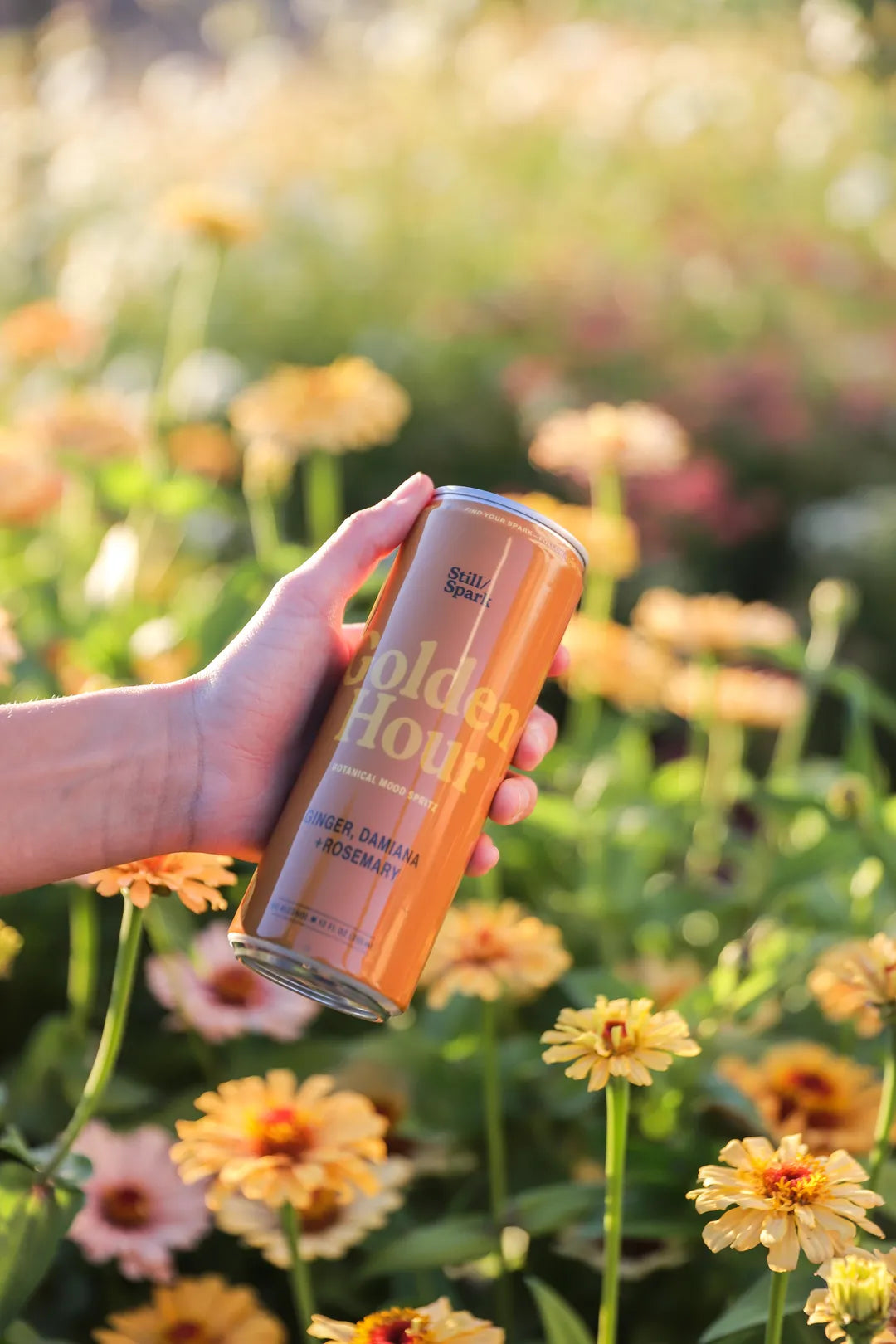 GOLDEN HOUR—Social energy with a sunny glow: Ginger, Damiana + Rosemary That just-right, whole-body-smile feeling. Made for open windows, impromptu gatherings, and connected conversations. Ginger energizes, lemon brightens, damiana lifts the spirit—social, steady, radiant. You’re up for it—and lit from within.