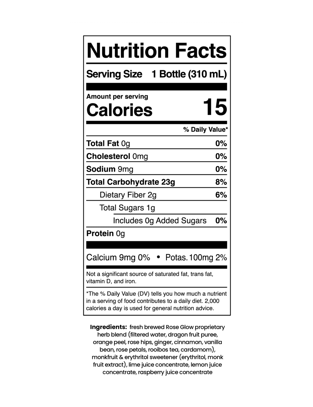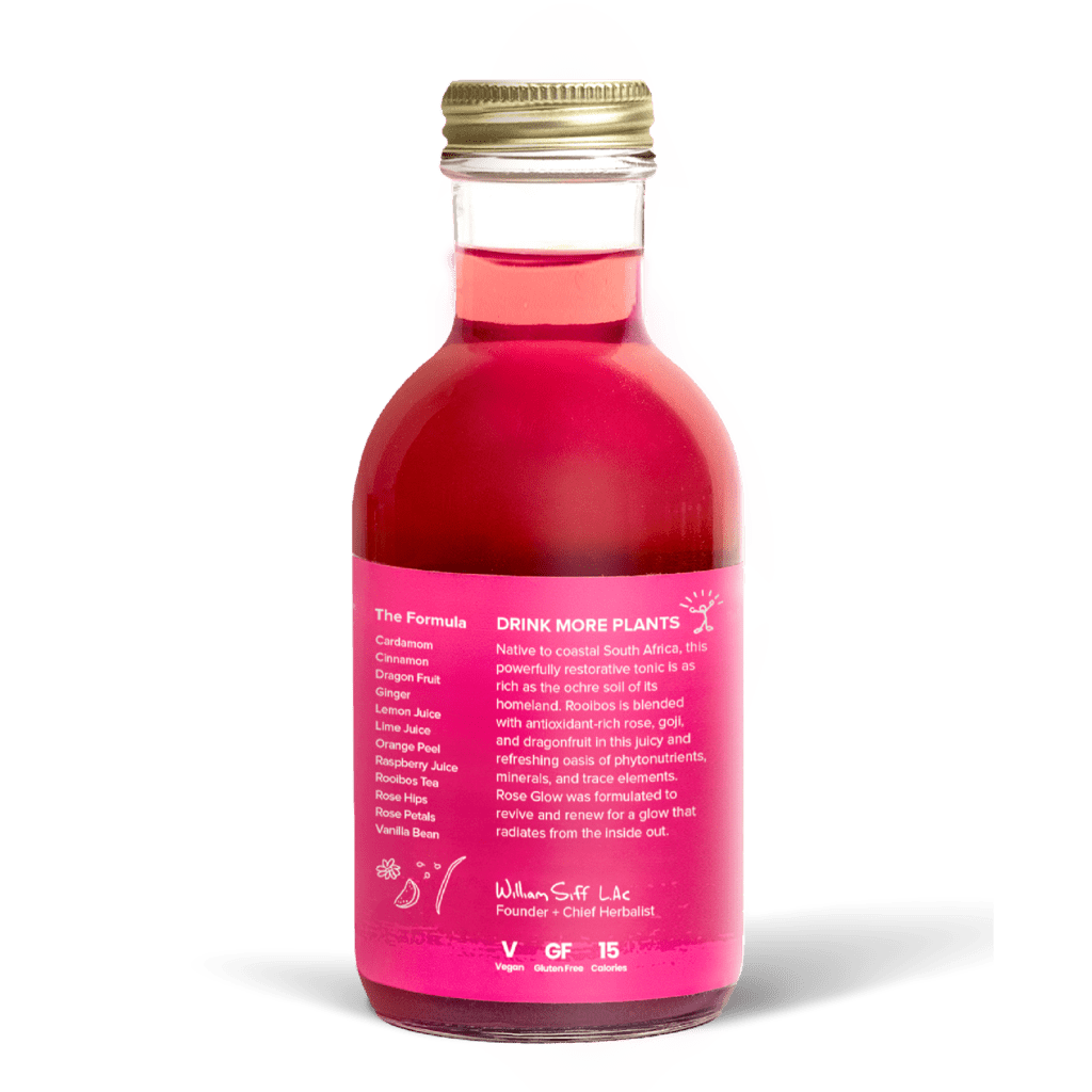 Our soothing Rose Glow tonic is rich in antioxidants, phytonutrients, minerals, and trace elements. Rose Glow was formulated to revive and renew for a glow that radiates from the inside out. Made with rooibos from South Africa, combined with raspberry and rose, it has a flavor you won’t find anywhere else!