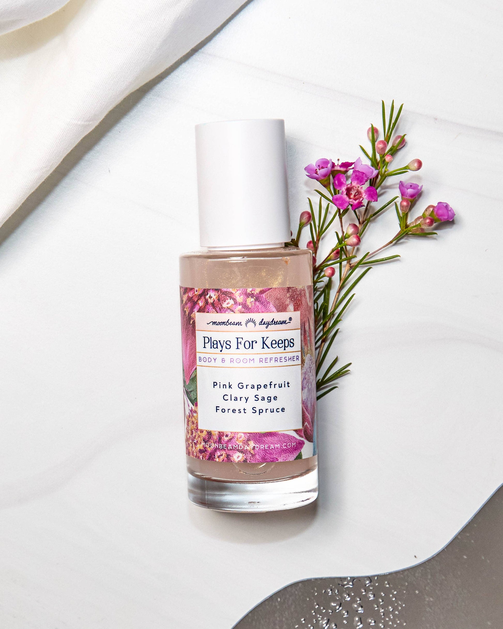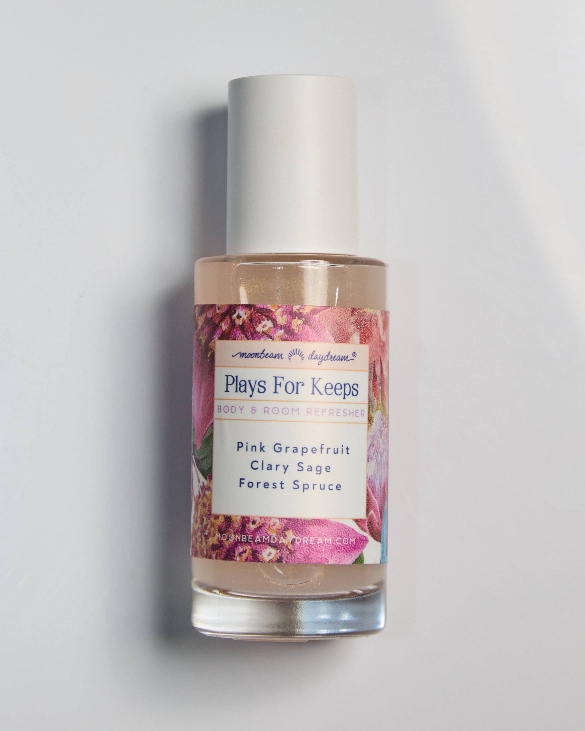 Plays for Keeps, a body & room mist, is designed to bring a unique energy to every space. This vibrant, centering blend combines the uplifting notes of Grapefruit, the calming balance of Clary Sage, and the grounding touch of Spruce essential oils. Perfect for setting a positive mood, whether you’re welcoming guests into your home or treating yourself to a moment of tranquility.