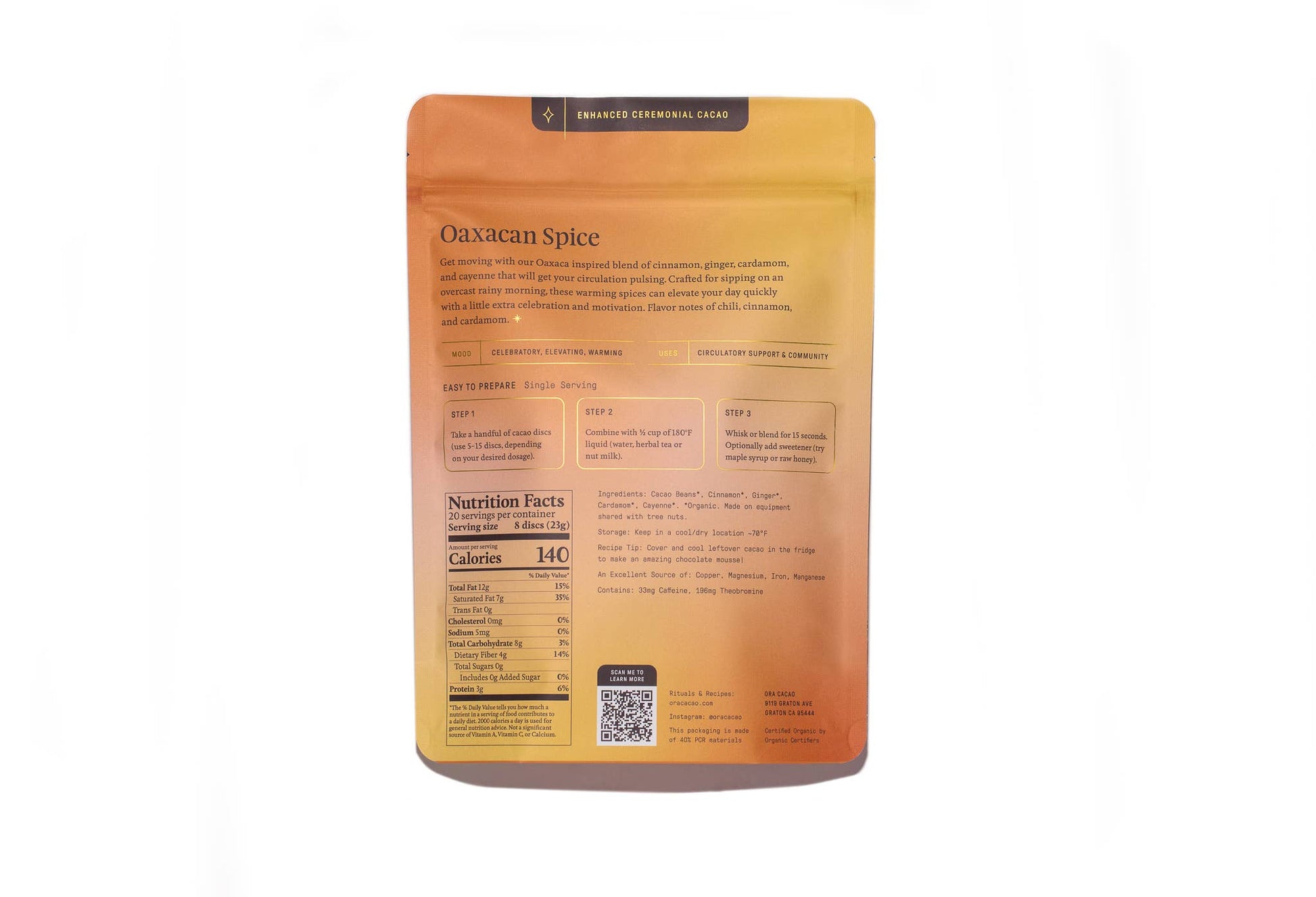 On some days you just need a little extra celebration and motivation, and this pure ceremonial cacao elevates you quickly as our blend of cinnamon, cardamom, ginger, and cayenne get your circulation pulsing.