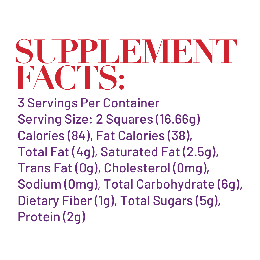 Functional Dark Chocolate, formulated to address the issues associated with aches and pains. Clinically researched ingredients supported with vitamins, herbs & minerals, delivered in delicious dark chocolate.
